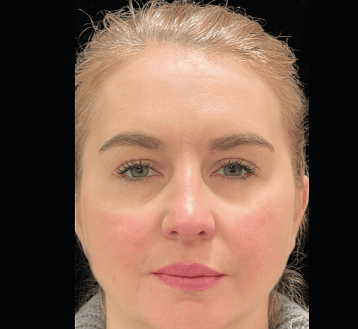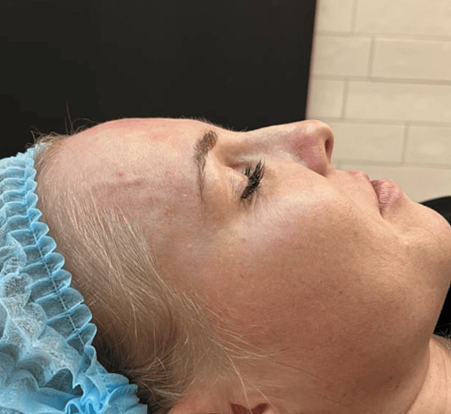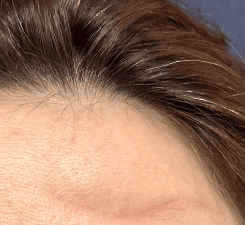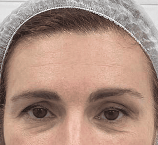Проблема: Выправили "западение" и сделали лоб более сферичным, что визуально придает лицу молодость, поднимает брови, открывает взгляд и разглаживает морщины, которые не корректируются ботулотоксином.