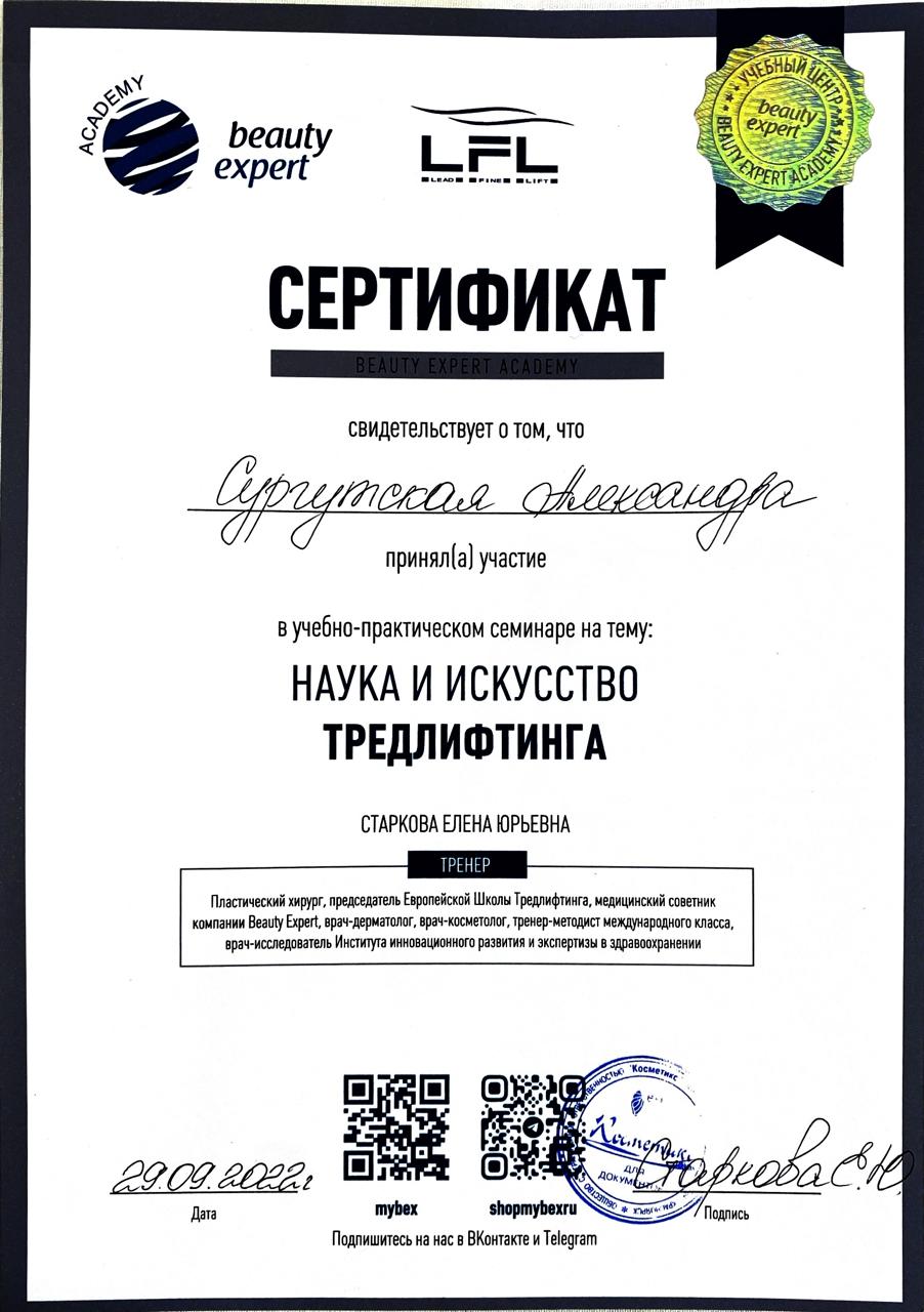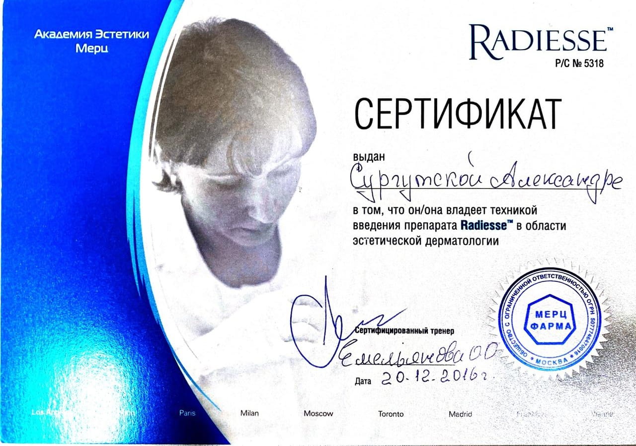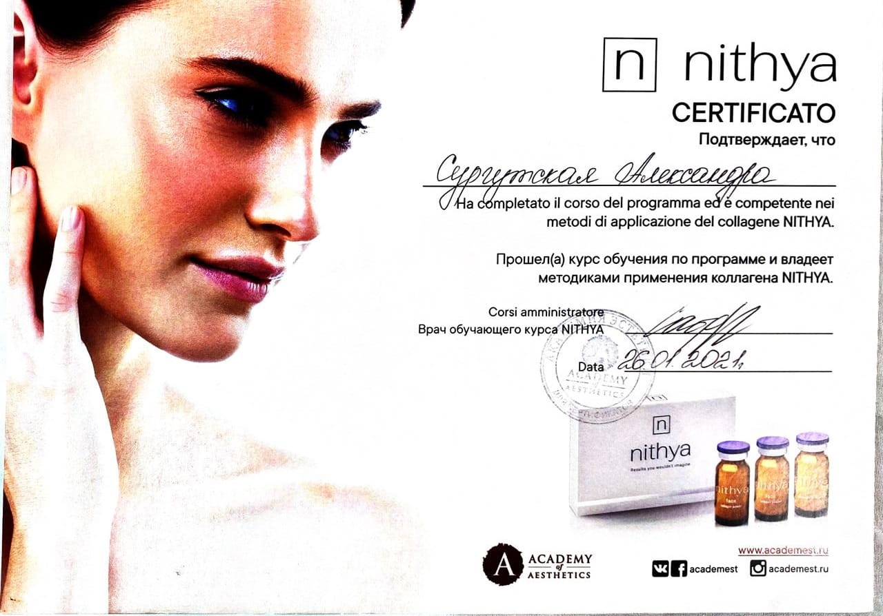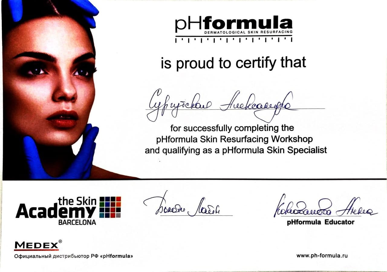 - Сертификат специалиста по специальности «Косметология» №0124040002700 дата выдачи 16.12.2016