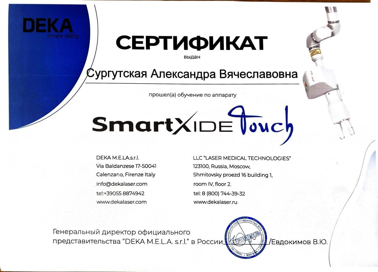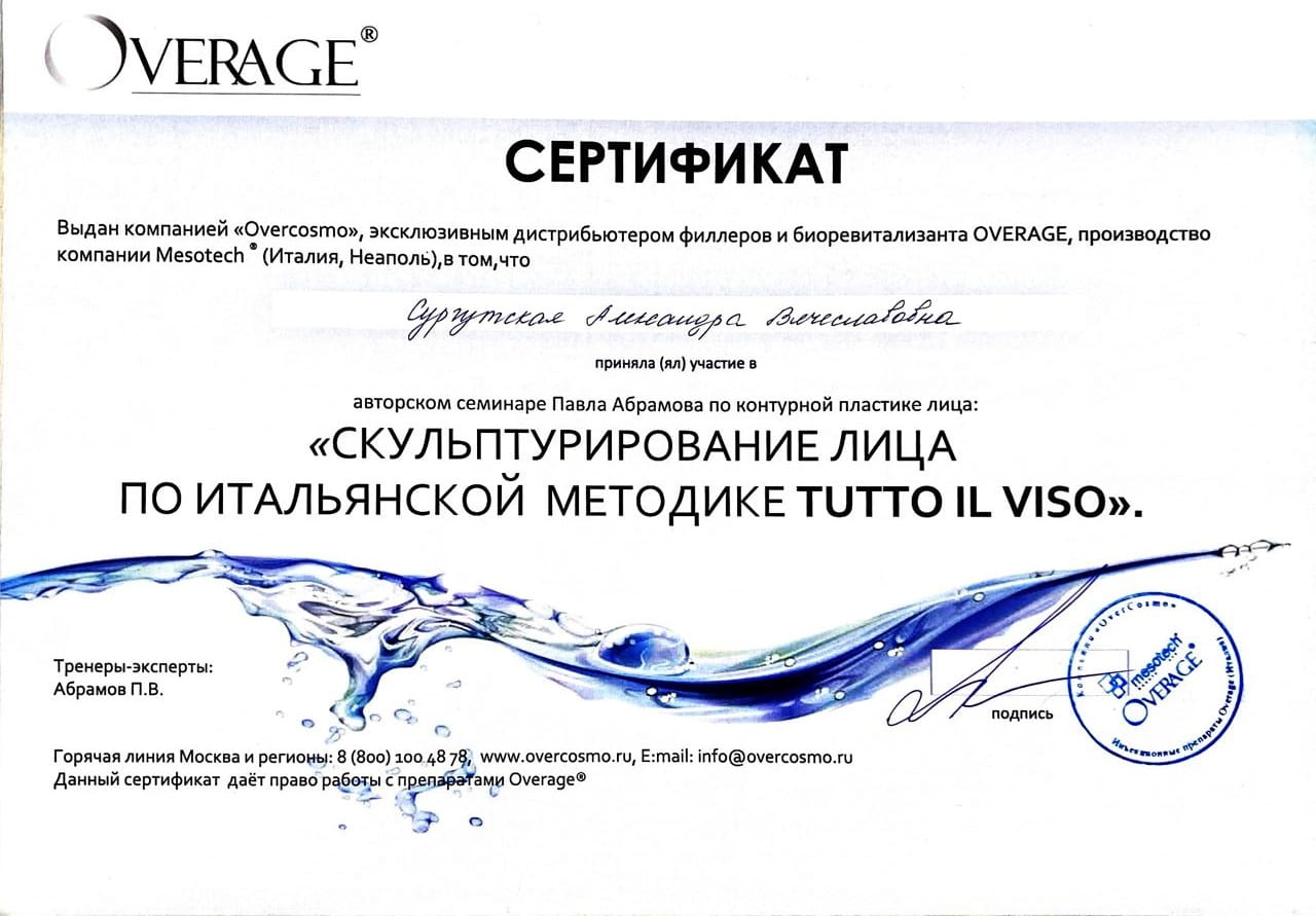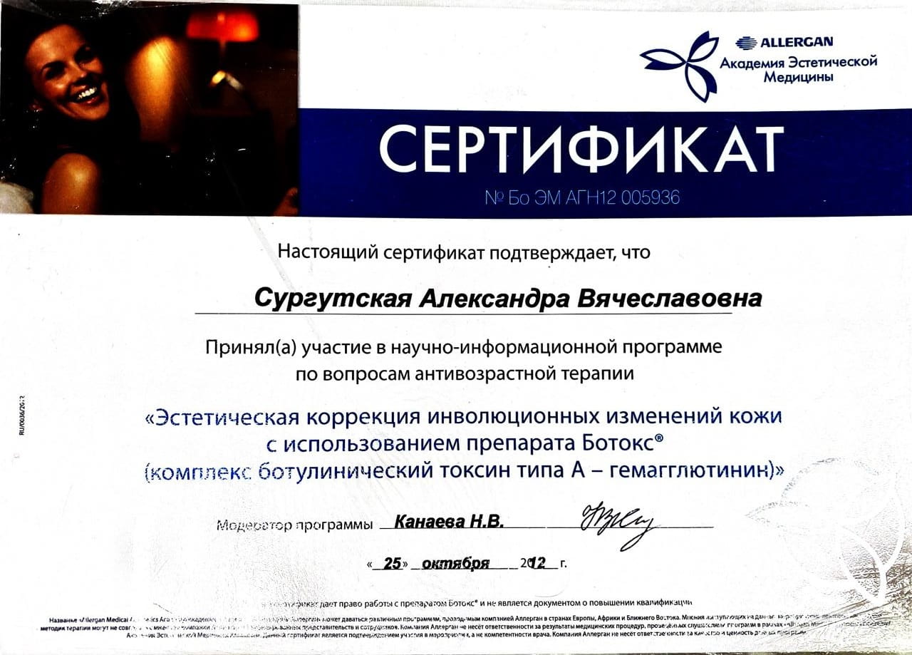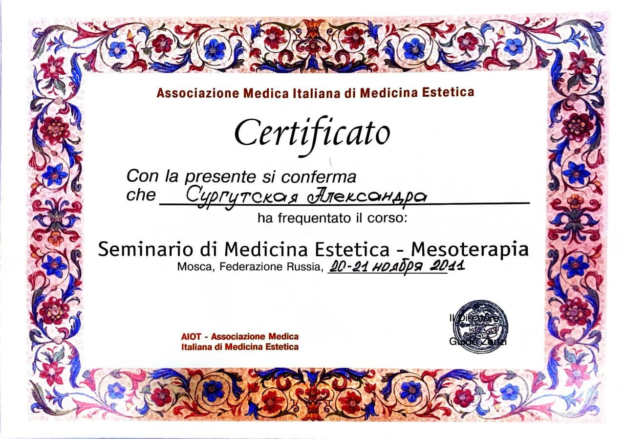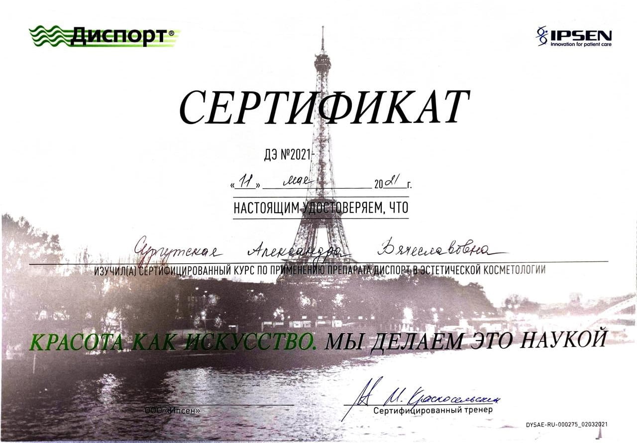 - Сертификат специалиста по специальности «Косметология» №0124040002700 дата выдачи 16.12.2016