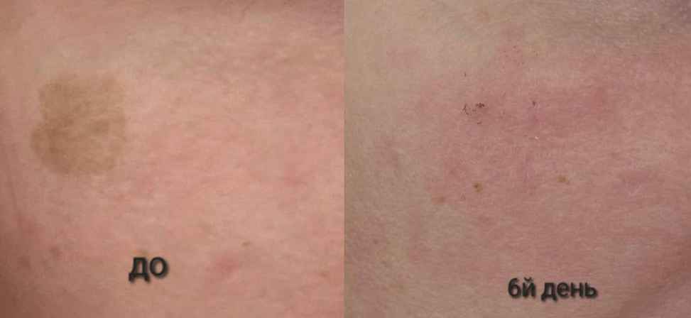 По окончании сеанса пигментированные участки становятся еще темнее, а затем исчезают в течение 1-2 недель. Полностью оценить результат можно через месяц.