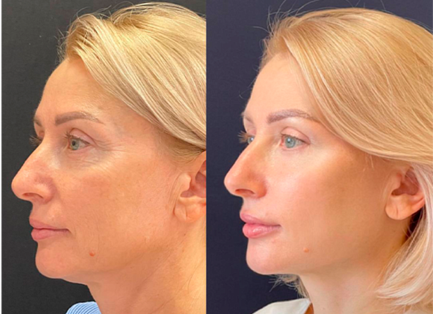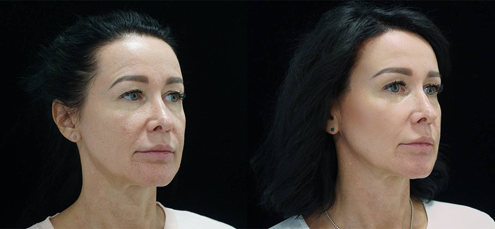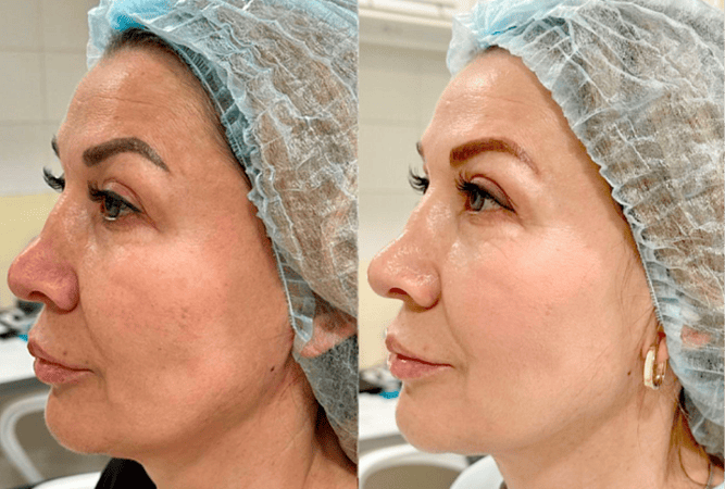Результат процедуры – уплотнение и улучшение качества кожи и лифтинг обработанной зоны.