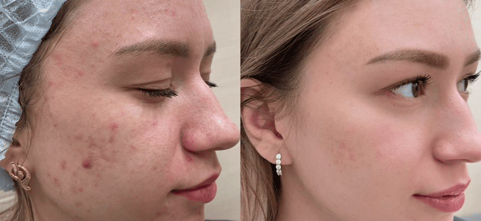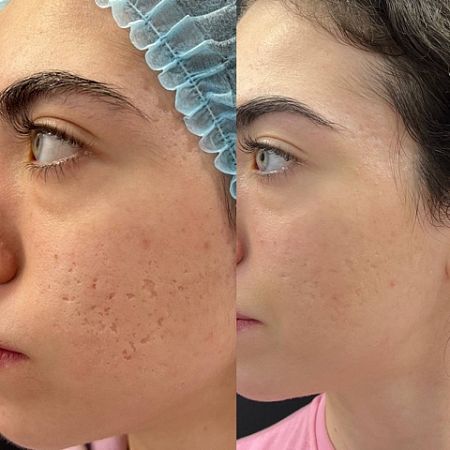- Кожа стала ровнее, «бугристость» стала менее выраженной, постакне начали уменьшаться. При легкой и средней степени заболевания бывает достаточно одного сеанса, чтобы получить качественно новый рельеф кожи.
