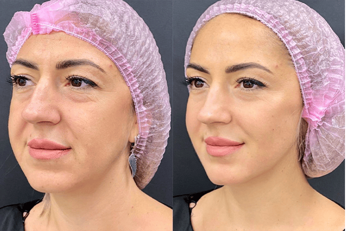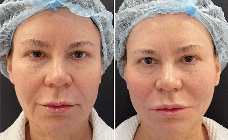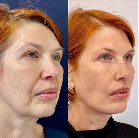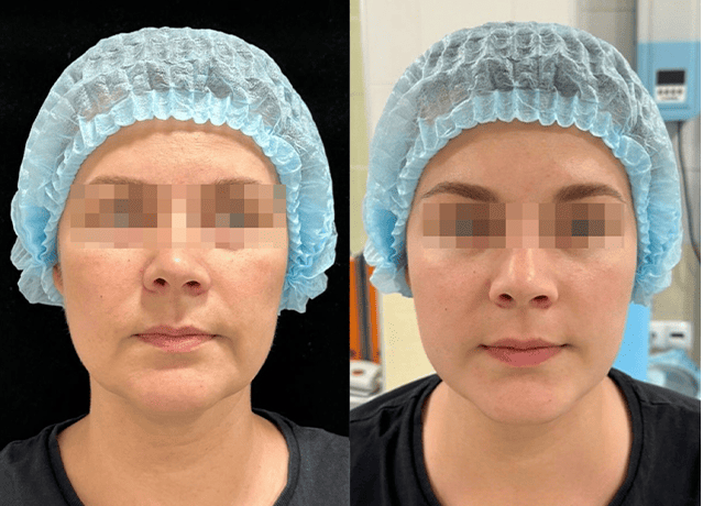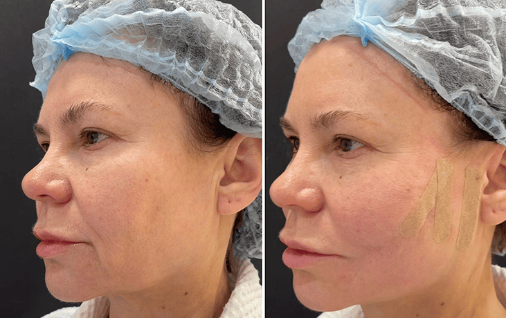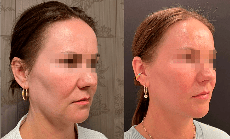 Нити формируют каркас лица: сначала они механически поддерживают ткани в нужном положении, а со временем вокруг нитей образуется собственная соединительная ткань. Дополнительно запускается процесс выработки коллагена, который укрепляет опорные структуры лица и продлевает эффект. В результате мы получаем стойкий эффект омоложения — даже после рассасывания нитей ткани не будут провисать благодаря сформированному естественному каркасу.