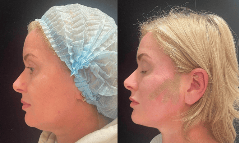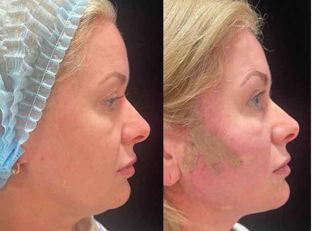 - лицо мгновенно подтягивается, овал лица становится точеным;